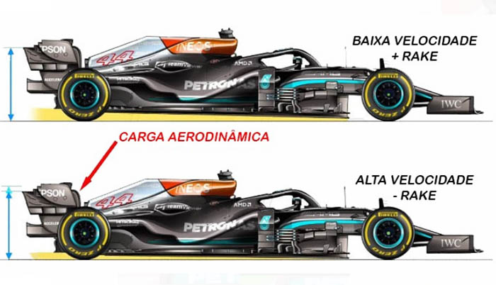 Isso faz com que os Prateados possam usar uma asa traseira mais pesada, ao mesmo tempo em que consegue ser mais rápido nas retas. É o melhor dos dois mundos, ou seja, um carro de rake mais alto (traseira mais alta) em freadas, entradas e contornos de curvas e ao mesmo tempo quase plano nas retas de alta velocidade.