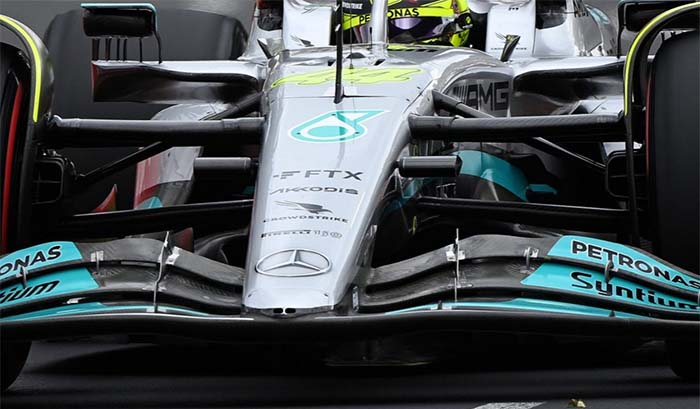 Isso foi evidenciado por Hamilton e George Russell alternando entre uma configuração de asa traseira com e sem a aba Gurney na borda de fuga, enquanto também forçavam propositadamente o carro em uma direção que piorava o quique para coletar dados e entender melhor como lidar com isso.
