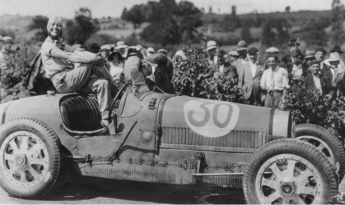 Grand Prix pioneiro de Monthéry só para mulheres, 1929. Precedida pela fama, a bela dançarina e stripper dos luxuosos cabarés parisienses, Hellé Nice, conhecida no país inteiro pela performance no hit musical, Les Ailes de Paris, ao lado de Maurice Chevalier, é a grande atração da corrida.