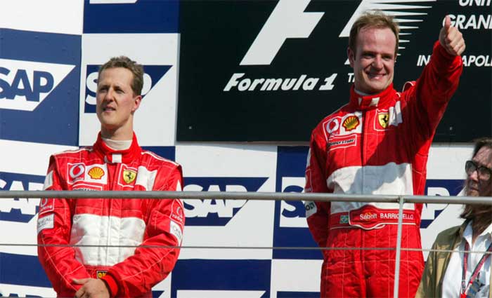 Números restritos a 2000-2005, embate na Ferrari entre Schumacher e Barrichello: Vitórias – Shumi 49 / Rubens 09. Poles – Shumi 43 / Rubens 11. Pontos – Shumi 678 / Rubens 412. Títulos – Shumi 05 / Rubens 00.