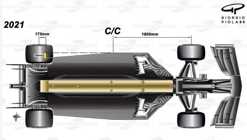 Para 2021, a FIA estipulou que um pedaço do assoalho na frente dos pneus traseiros deve ser removido. As ranhuras e orifícios atualmente permitidos na peça também desaparecerão. O objetivo é que os carros gerem menos downforce. A desculpa da FIA para tal alteração foi para que os pneus atuais da Pirelli possam continuar a ser usados com segurança.