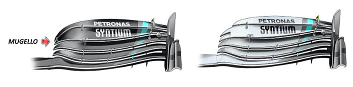 Muito trabalho aerodinâmico provavelmente será feito na dianteira do carro, com a confirmação da nova especificação de asa que estreou em Mugello, e foi então usada em Abu Dhabi. As mudanças se concentram principalmente na micro-aerodinâmica, com uma gestão diferente do vórtice Y250, que se adaptará aos novos bargeboards, introduzidos na Bélgica.