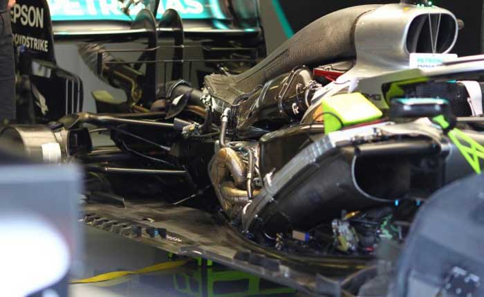 Na última temporada, a Mercedes fez um extenso trabalho de modificação nas saídas do radiador, movendo os ‘cortadores de ar’ acima da estrutura de impacto lateral. Tudo isso obviamente teve benefícios aerodinâmicos aumentando o canal lateral para o fluxo de ar ao longo das laterais do carro e aproveitando o ‘efeito coanda”.