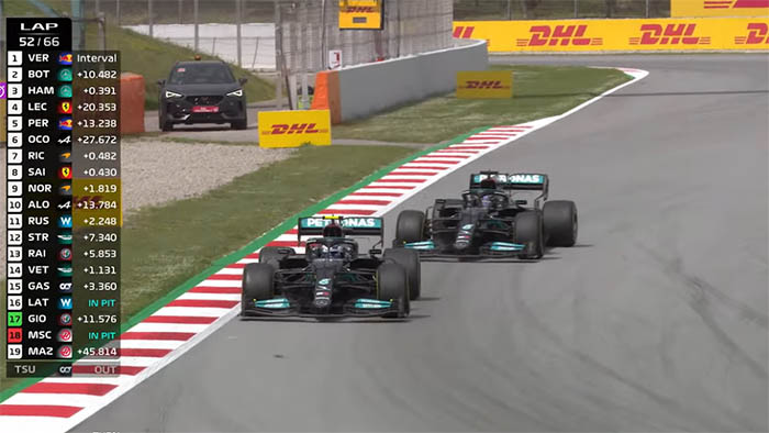 Verstappen fez sua parte na primeira curva, ao se jogar por dentro e assumir a prova. Todo o resto da corrida se resumiu a um verdadeiro show de eficiência da Mercedes e de seu piloto principal, aliado à velocidade absurda do modelo W12 que, se não é o melhor de todos os que os alemães produziram, segue sendo um equipamento de primeira linha.