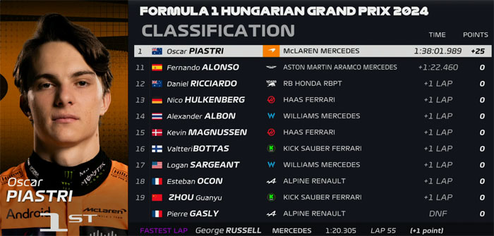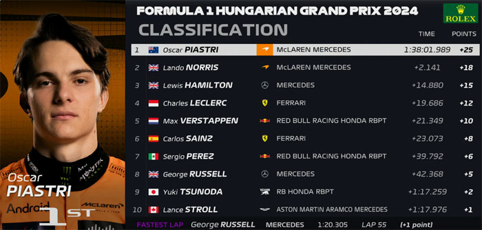 Oscar Piastri conquistou sua primeira vitória na Fórmula 1 no GP da Hungria, uma corrida ofuscada por uma controversa ordem da McLaren.