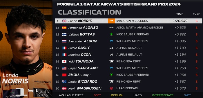 Lando Norris e Oscar Piastri lideraram a tabela de tempos do TL2 para o Grande Prêmio da Inglaterra, mas o ritmo de Max Verstappen permanece um mistério devido ao fato de ele ter rodado com pneus macios muito antes. Sergio Perez saiu mais tarde e saltou para o P3, sendo dois décimos mais rápido do que o holandês.