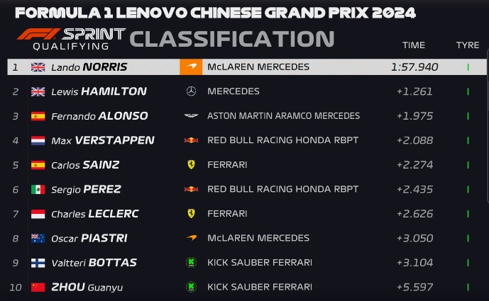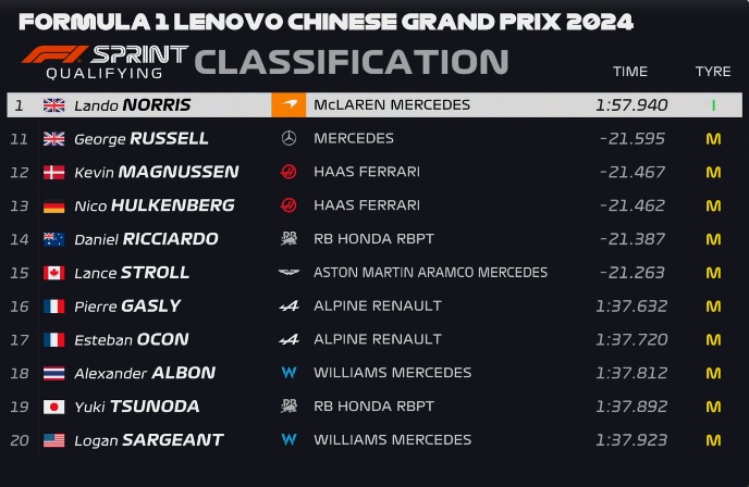Lando Norris se classificou na pole position para a corrida curta de sábado na China. O piloto da McLaren teve um tempo de volta excluído, mas os comissários o restabeleceram.