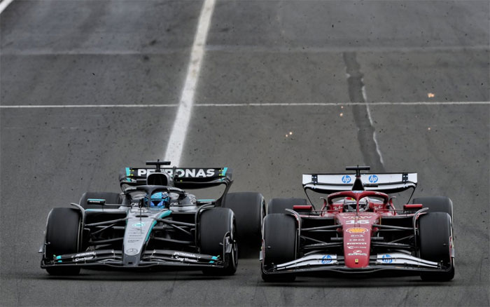 Ainda mais, na volta 48, Russell começou a se aproximar de Leclerc. A Ferrari não estava usando o total da energia nas retas e também perdeu velocidade nas curvas.