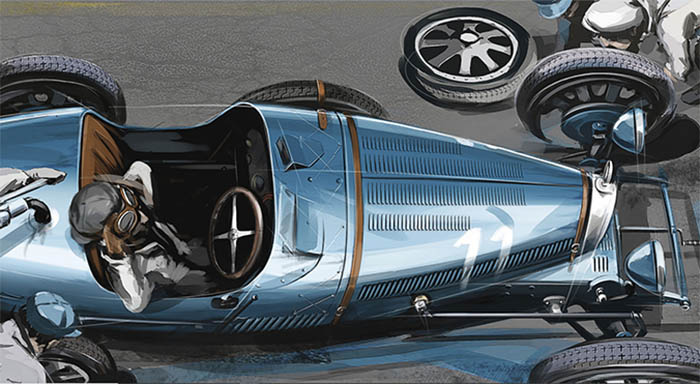 Damas altruístas lhe financiaram as primeiras corridas, provas secundárias, categoria menor, sem tanta importância. Porém seu nome pipocava aqui, ali, vitória pós-vitória rederam aproximação com Ettore Bugatti, cuja indústria sediada na pequena Molsheim, comuna francesa do Baixo Reno, estivera sob domínio alemão durante o prélio. Restituída à França em 1919, do lugar, ainda hoje, saem os Hypercars mais caros e velozes do mundo.