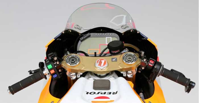 A MotoGP obriga o uso de um pacote eletrônico padronizado que permite configurar os controles de tração, antiderrapagem, potência e freio-motor. A combinação destes sistemas pode ser alterada em função do traçado do circuito e o piloto tem a opção de diversos cenários em uma mesma volta, considerando o ajuste individual de cada item a quantidade de opções é enorme. A opção de escolha entre mapas pré-configurados é realizada através de botões localizados próximos aos manetes. Uma tela multimídia na parte frontal fornece indicações sobre o estado de cada sistema individual, além de outros dados importantes como volume do combustível, temperatura de diversos componentes, estado da pista, pressão dos fluidos e rotações por minuto do motor.