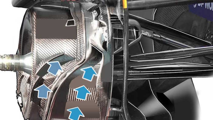 Segundo relatos, imagens revelaram áreas anormalmente frias no conjunto do tambor de freio da McLaren, sugerindo que eles desenvolveram uma maneira de impedir que o calor do freio seja transferido para os pneus — preservando sua vida útil por mais tempo.