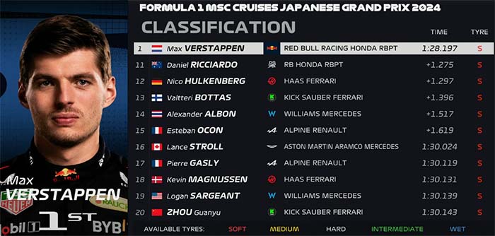 Os Red Bulls foram novamente a classe do grid na classificação para o GP do Japão. Max Verstappen foi consistentemente mais rápido sempre, com Sergio Perez terminando em P2 apenas 0,066s atrás. Norris, da McLaren, foi o adversário mais próximo e largará em P3 amanhã.